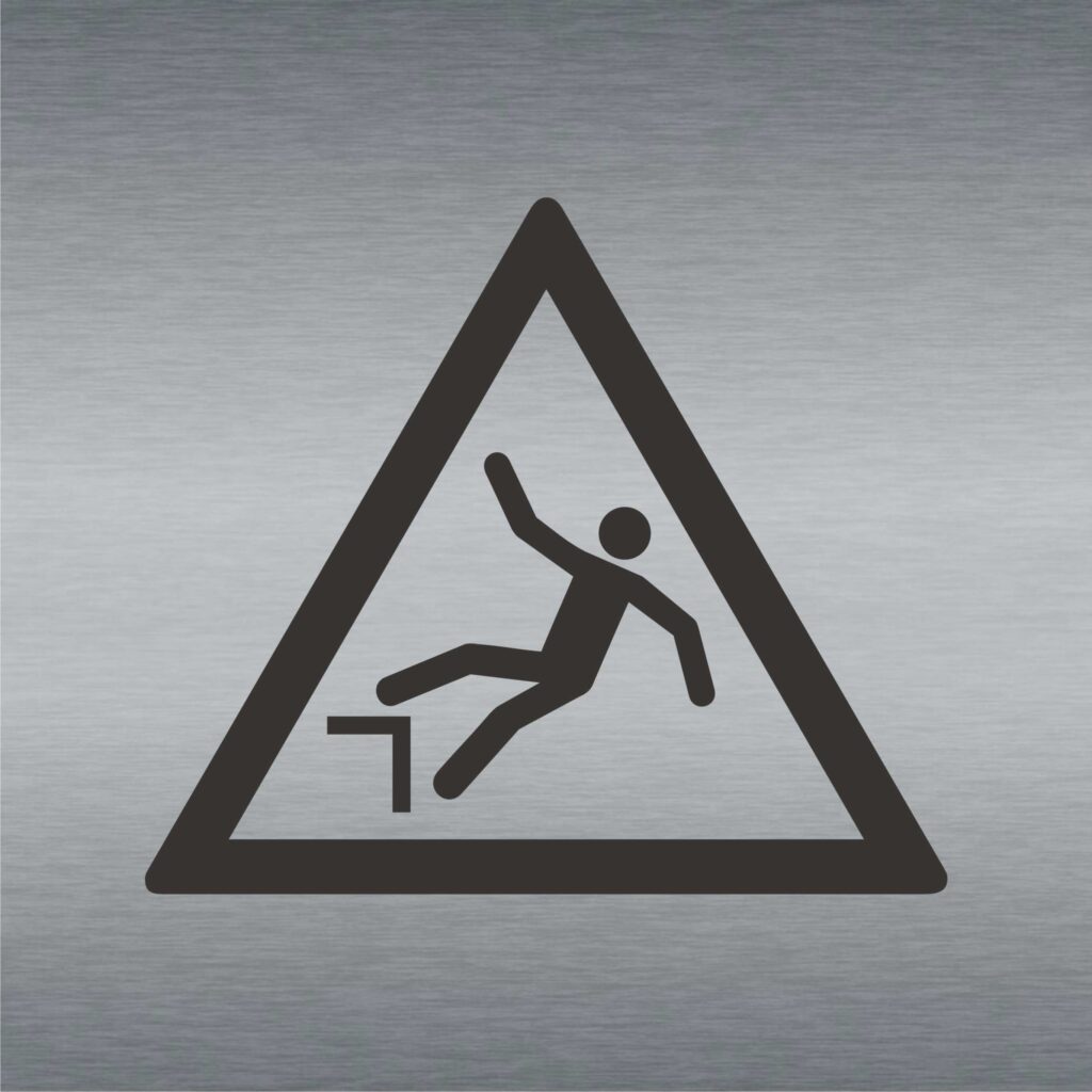 Warnzeichen „Warnung vor Absturzgefahr“ angelehnt an „W008“ nach ASR A1.3 & DIN EN ISO 7010*